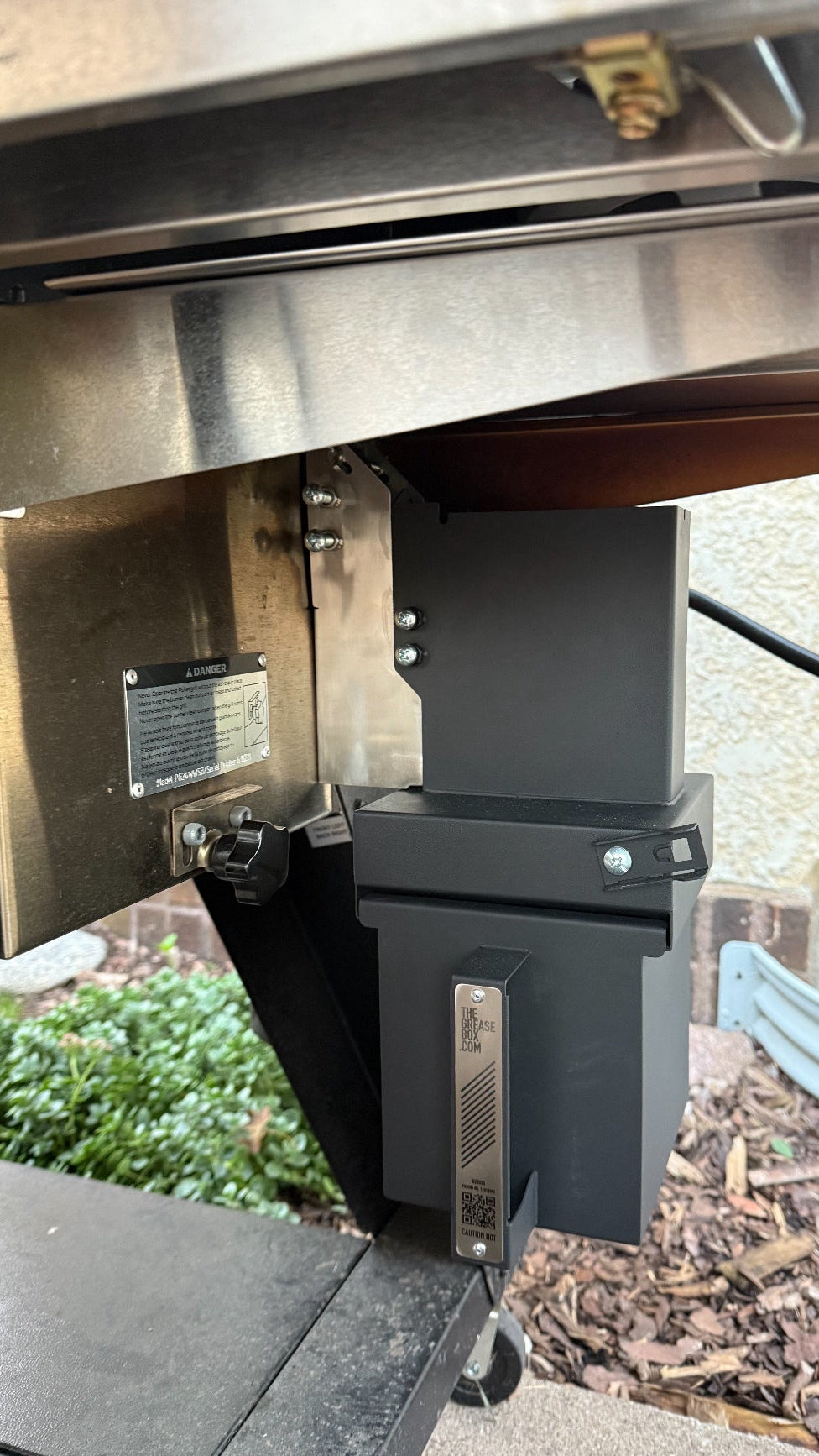 - Solid Stainless steel construction replaces the flimsy, swinging, open standard grease bucket included on all pellet grills.