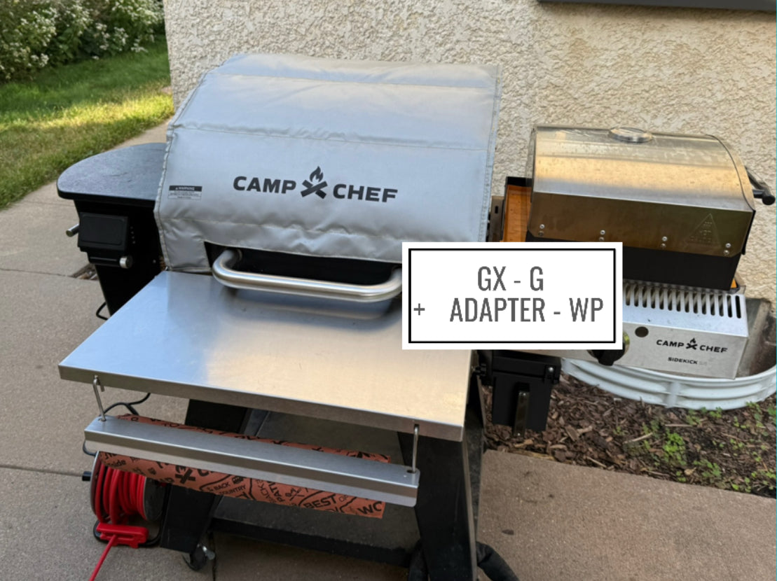 Install the + Adapter- WP to the Grease Box GX-G (Sold Separately) for a perfect fit on Camp Chef Grills with the Sidekick accessory as it allows for The Grease Box to make solid connection to the grill while also maintaining access to the ash clean out function.