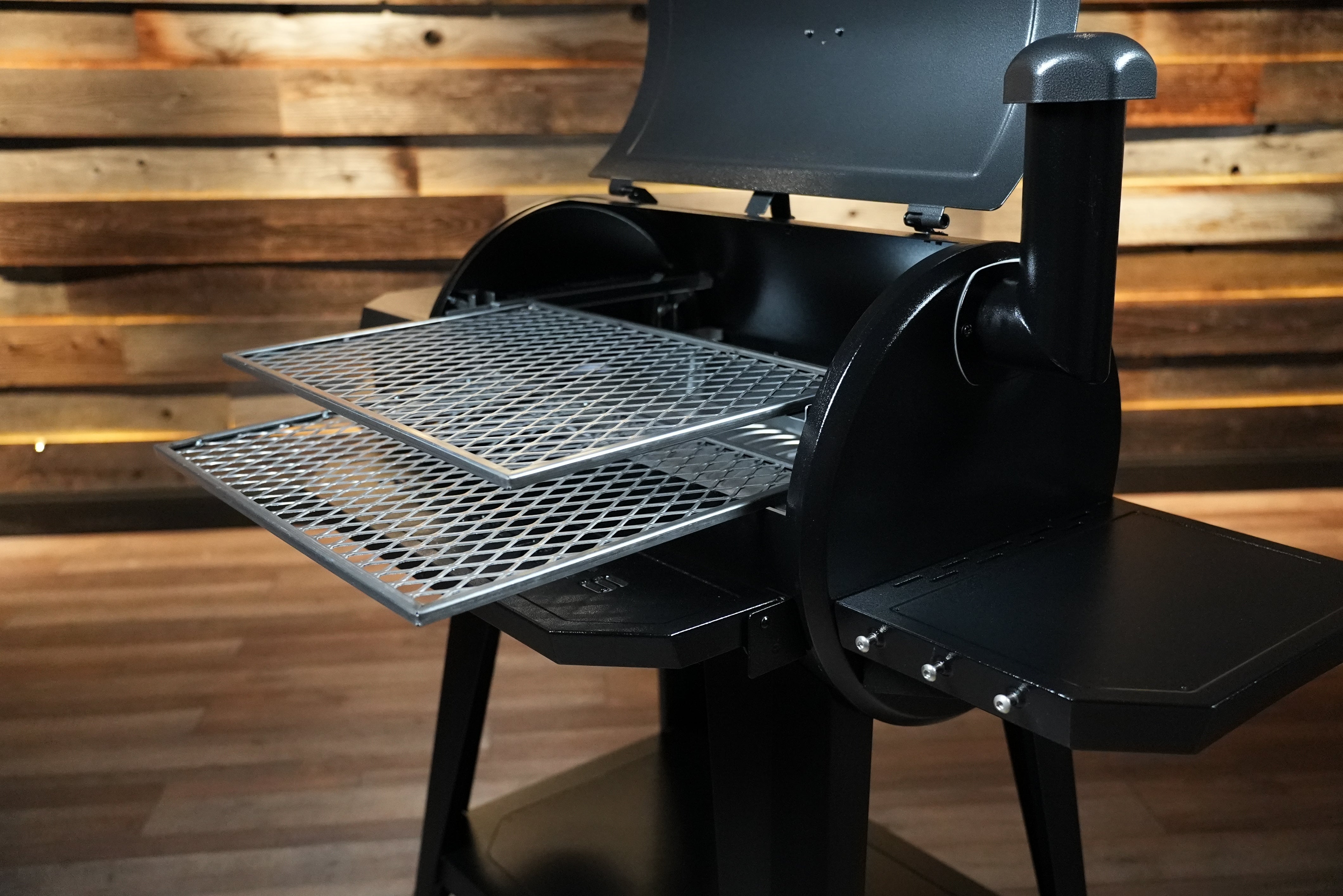 The Pimp My Grill PMG Gen2 Slide-Out Grate Rack System (2-Rack Configuration) is a purpose-built upgrade for the Pit Boss Pro 850 and 850DX, designed to improve how you use your cooking space — giving you smoother access, better airflow, and more control during every cook.