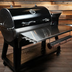 The Pimp My Grill Tactical Stainless Folding Front Shelf is a premium upgrade designed specifically for the RecTeq RT-800 Deck Boss, giving you a larger, stronger, and more functional prep surface than the factory shelf — without drilling, cutting, or modifying your grill.