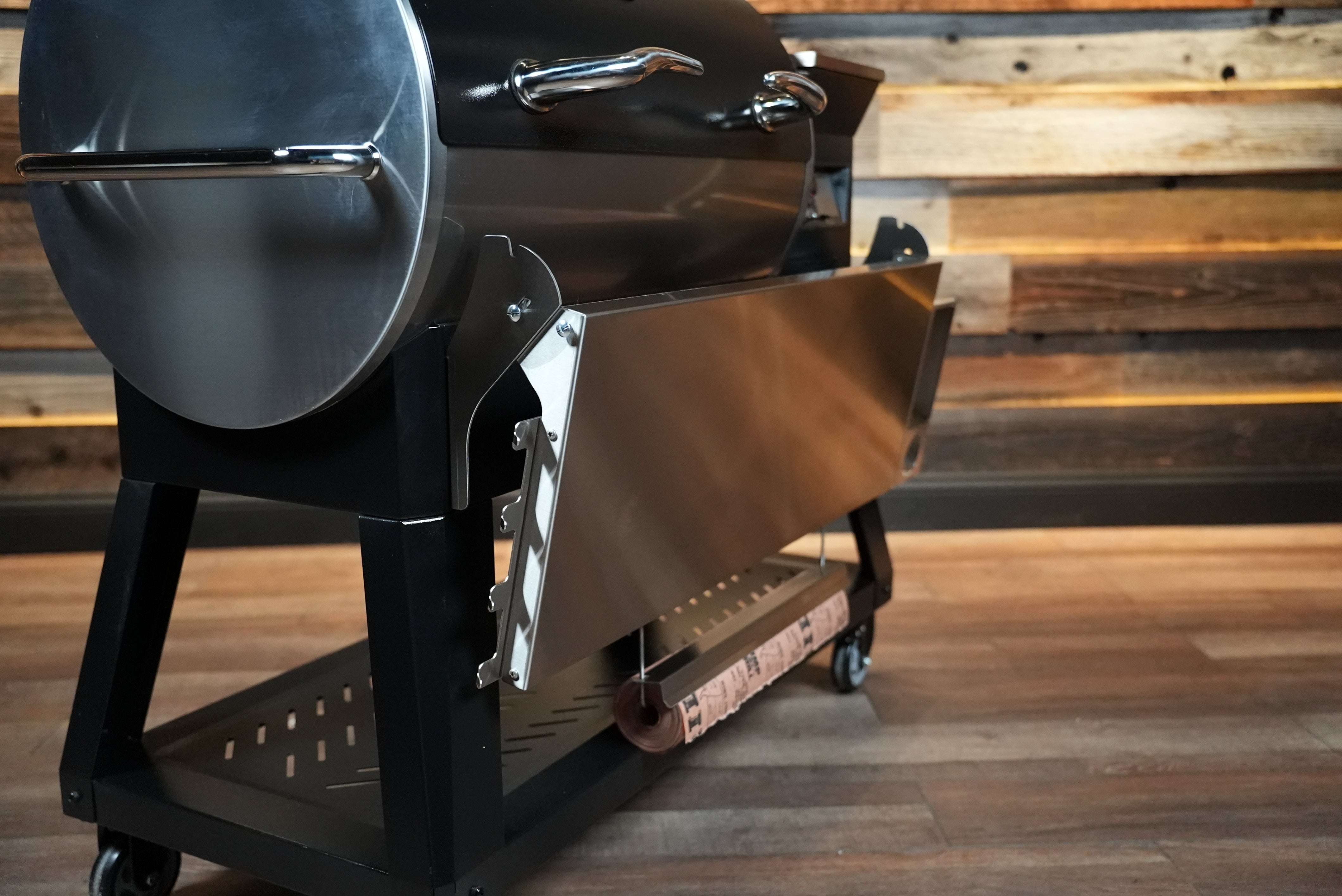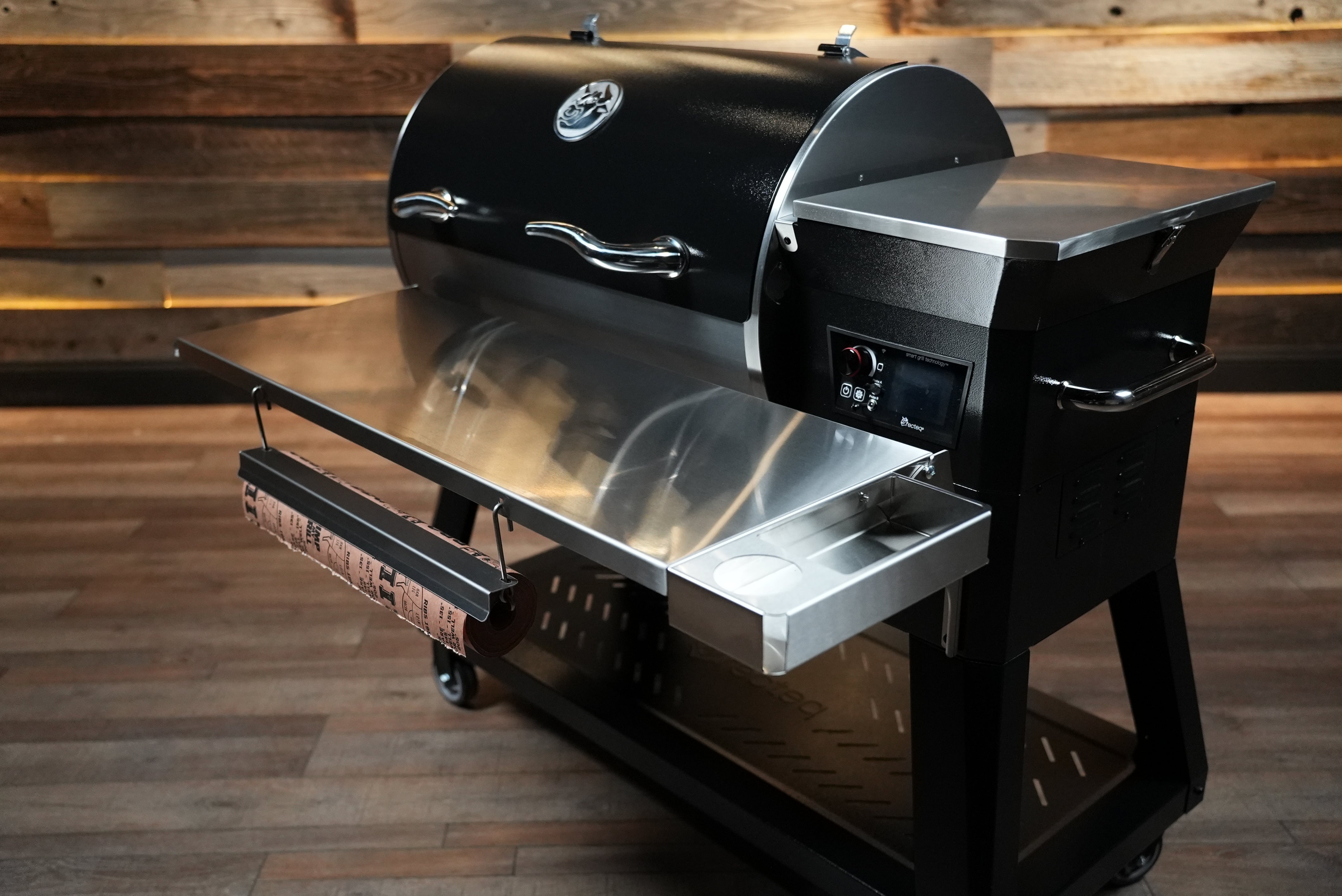 The Tactical Stainless Folding Front Shelf for the RecTeq RT-800 Deck Boss delivers the workspace, flexibility, and durability your grill deserves — built to perform cook after cook.